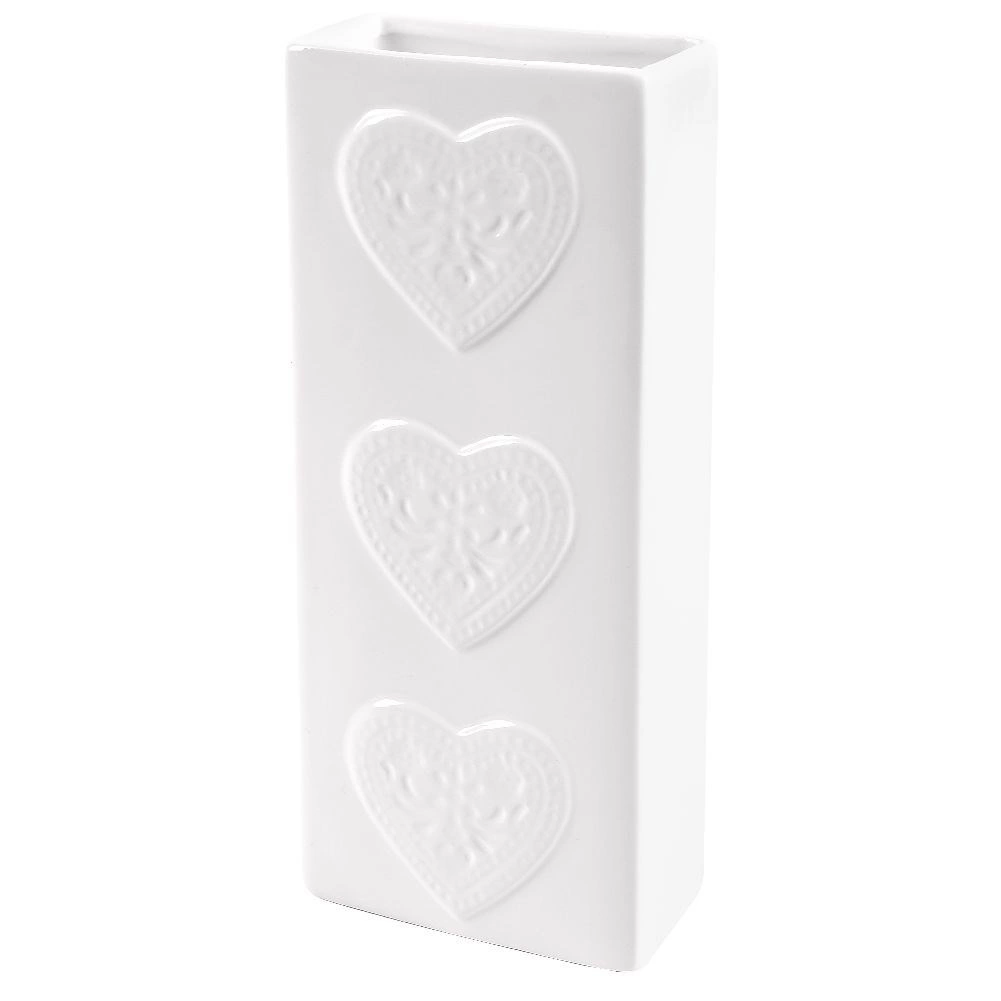 Bijela glazirana keramika s reljefnim srcima djeluje elegantno i uklapa se u moderne i klasične interijere.