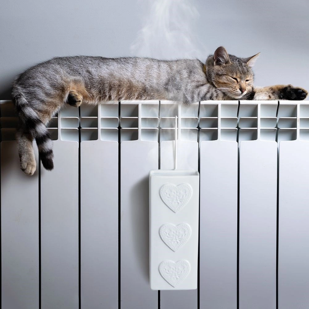Metalna kuka omogućuje brzo pričvršćivanje na većinu radijatora. Dovoljno je napuniti vodom i objesiti – ovlaživanje započinje odmah s toplinom radijatora.