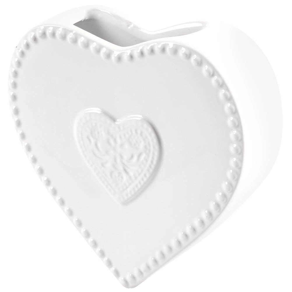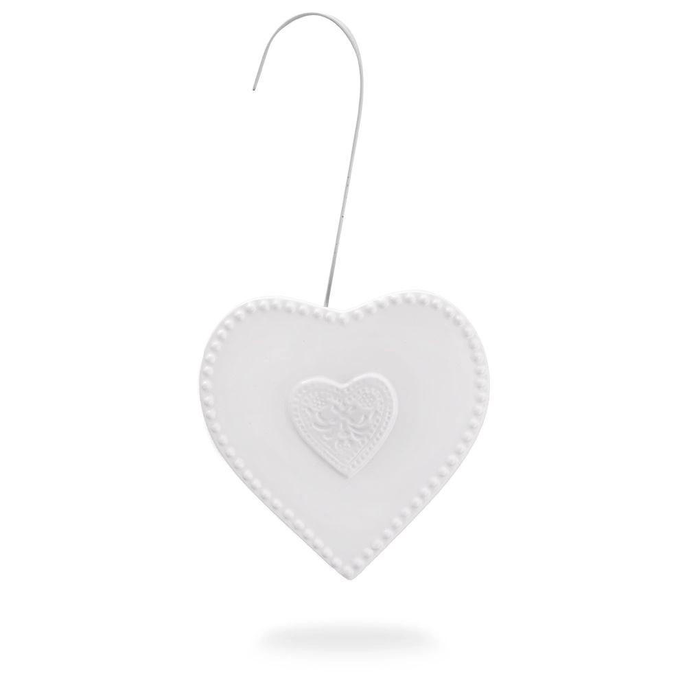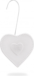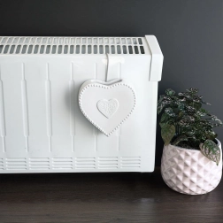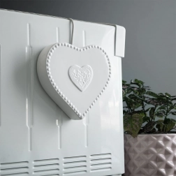 Bijela glazura, biserni rub i reljefni motiv srca daju radijatoru i prostoriji elegantan izgled.