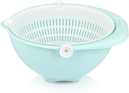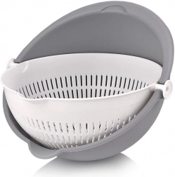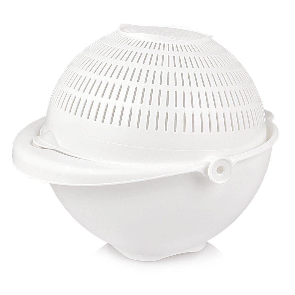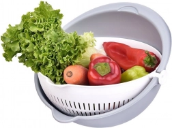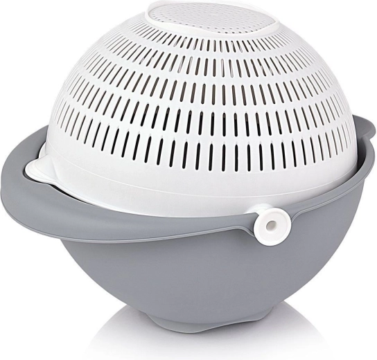 Otkrijte pametno rješenje za svakodnevne kuhinjske zadatke. Rotirajuće cjedilo smješteno u posudi omogućuje brzo ispiranje i odvod vode bez potrebe za presipavanjem namirnica. Pri naginjanju cjedilo ostaje vodoravno, pa je sadržaj siguran, a voda otječe u vanjsku posudu.