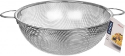 Ovo prostrano cjedilo ANETT od nehrđajućeg čelika ističe se finom mrežicom koja učinkovito zadržava namirnice, a istovremeno brzo odvodi vodu. Zahvaljujući dvjema udobnim ručkama i nožicama za stabilno stajanje, rukovanje je sigurno i jednostavno. Velikodušne dimenzije 36 × 28,5 × 11 cm omogućuju praktično cijeđenje i većih količina namirnica odjednom.