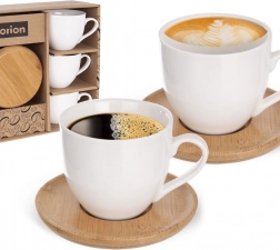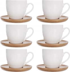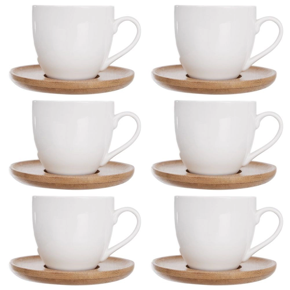 Šest bijelih porculanskih šalica s drvenim podlošcima čini skladnu cjelinu i ukrasit će svaki stol. Idealno za kućne bariste i kao poklon.