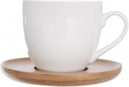 Set od 6 šalica za espresso s prirodnim bambusovim podlošcima idealan je za svakodnevnu upotrebu i svečano posluživanje. Bijeli porculan sa sjajnom površinom i čistim linijama odlično se uklapa u svaki stolni aranžman. Svaka šalica je lagana, izdržljiva i zahvaljujući udobnom uhu dobro leži u ruci.