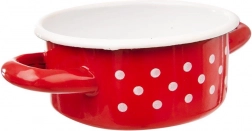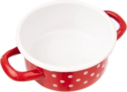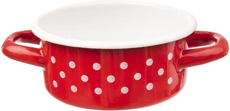 Retro emajlirani lonac TOČKICA u crvenoj boji s bijelim točkicama praktičan je pomoćnik za svakodnevno kuhanje umaka, juha i priloga. Kvalitetna emajlirana površina je higijenska, sigurna za alergičare i otporna na ogrebotine. Dva bočna rukohvata olakšavaju prenošenje i posluživanje izravno na stol.