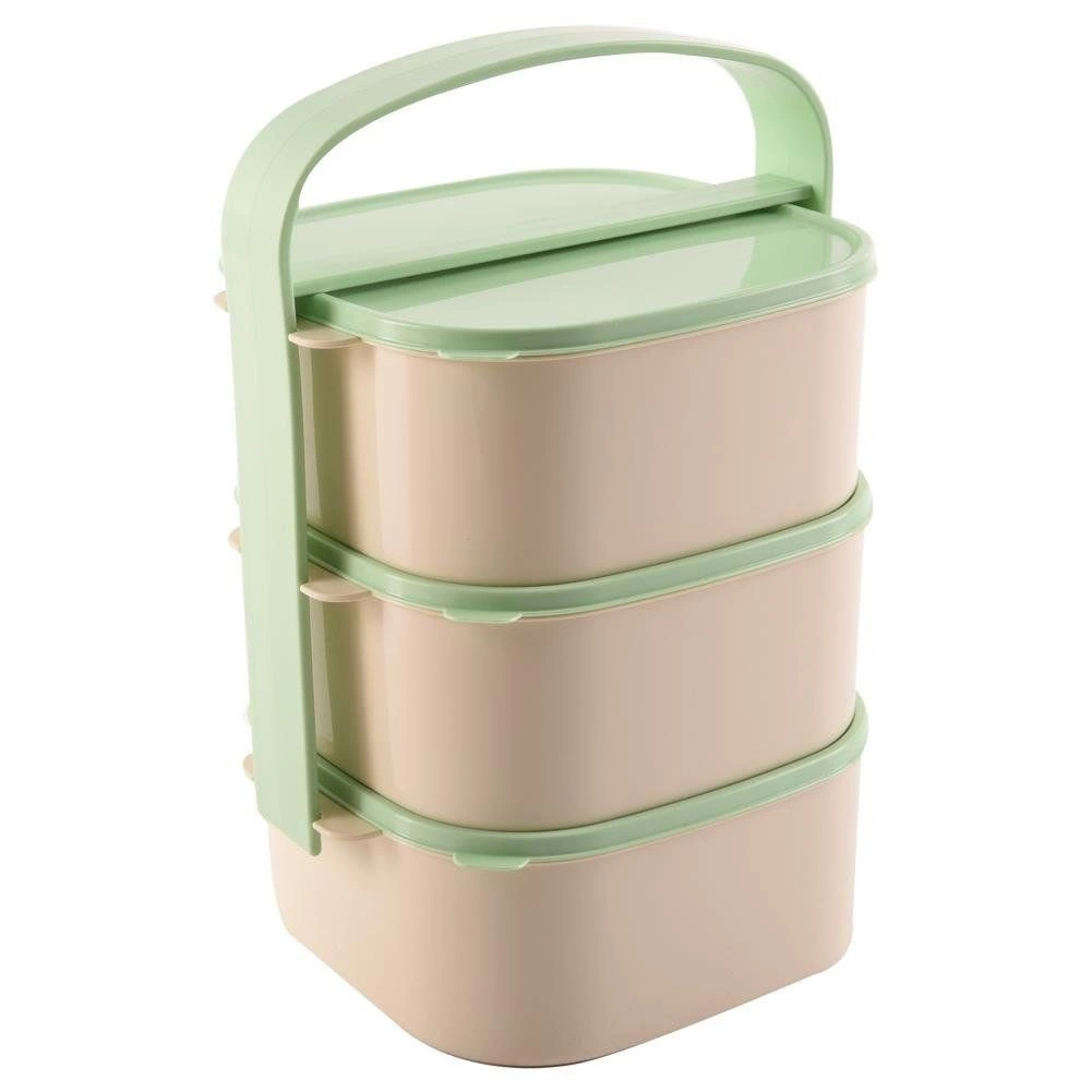 Ručka čvrsto fiksira sve tri posude menaze, čime se smanjuje rizik od samovoljnog otvaranja i prolijevanja sadržaja tijekom prenošenja.