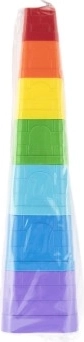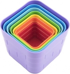 Sedam četvrtastih kocaka u živim bojama lako se slaže u stabilan toranj i potiče koordinaciju i strpljenje.