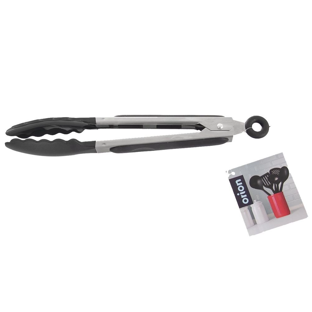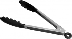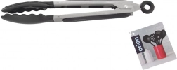 Praktična kuhinjska kliješta izvrsna su za okretanje, posluživanje i zahvaćanje jela. Robusno tijelo od nehrđajućeg čelika osigurava stabilan hvat, dok rebrasti silikonski vrhovi sigurno drže namirnice i ne grebu teflonske, keramičke ni druge neljepljive površine. Integrirana ušica služi kao vješalica i brava za štednju prostora pri odlaganju.