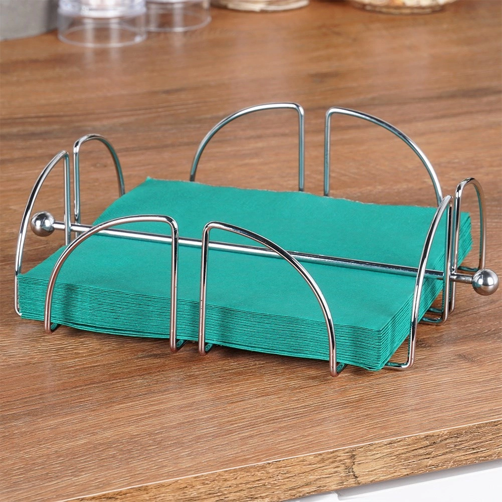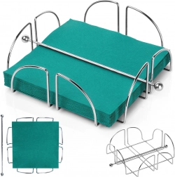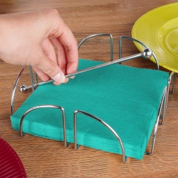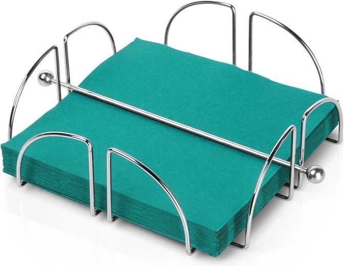 Praktičan i stilski stalak za salvete za svakodnevnu upotrebu. Kromirani čelik u srebrnoj izvedbi lako se čisti i odolijeva uobičajenom trošenju. Otvorena konstrukcija omogućuje brzo dopunjavanje i ugodno uzimanje salveta, dok ih pritisna šipka drži uredno poravnane.