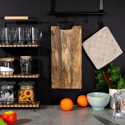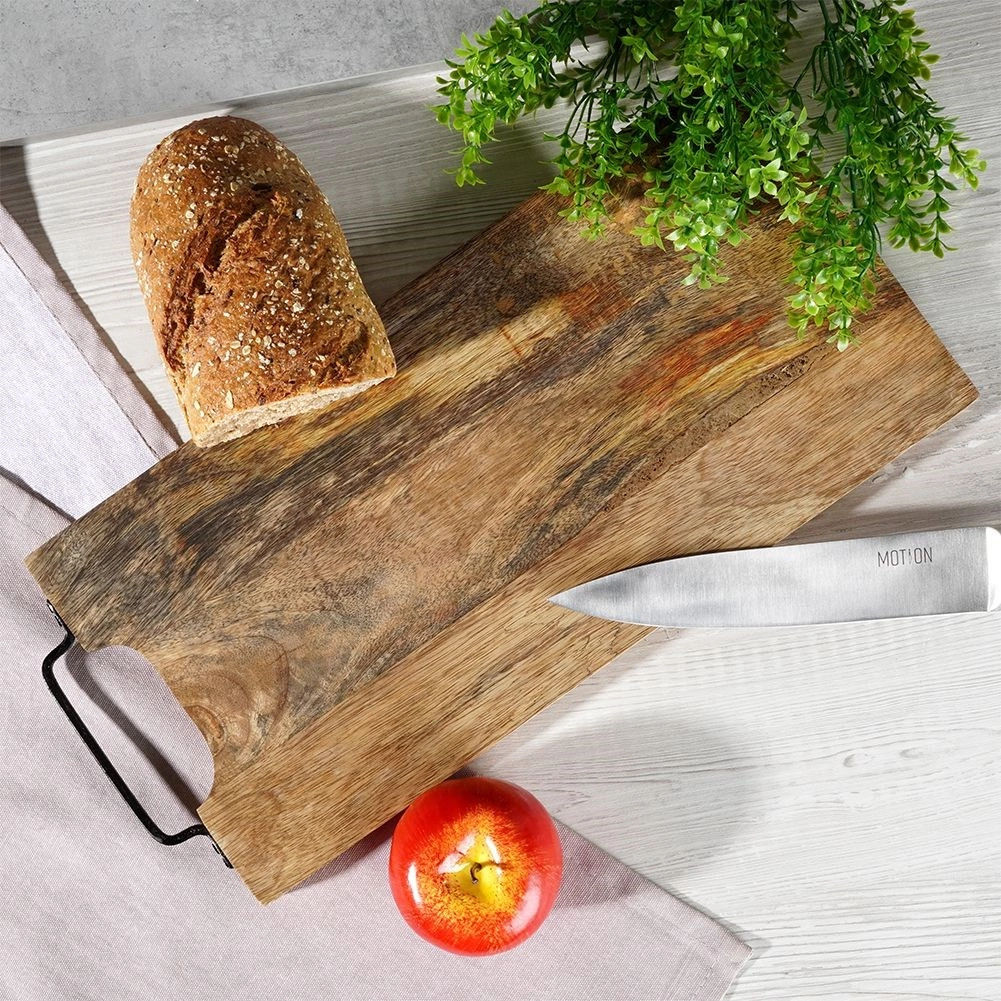 Podarite svojoj kuhinji stil i funkcionalnost. Masivna daska od mangova drva otporna je na vlagu i deformacije, ne upija mirise i jednostavna je za održavanje. Zahvaljujući prostranoj površini udobno ćete narezati peciva, povrće i meso te ujedno elegantno poslužiti sireve, suhomesnate proizvode ili predjela.