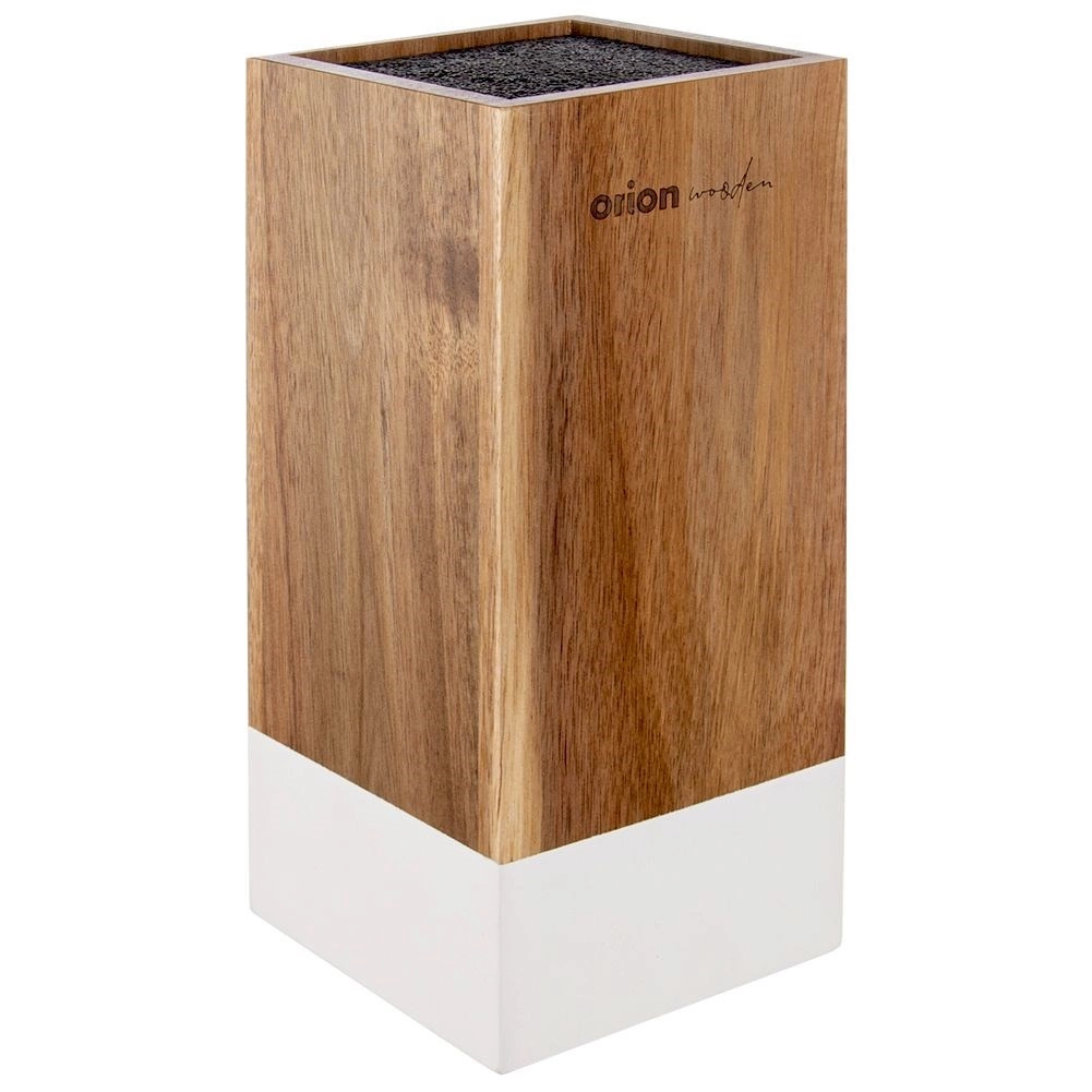 Praktičan i dizajnerski blok za noževe Whiteline izrađen je od kvalitetnog bagremovog drva i upotpunjen bijelom dekorativnom trakom. Zahvaljujući gustim, izvadivim plastičnim vlaknima sigurno ćete odložiti čelične, keramičke i kombinirane noževe bez rizika od tupenja. Kompaktan oblik štedi prostor na radnoj plohi i drži vaše kuhinjsko posuđe uvijek pri ruci.