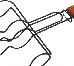 Dvodijelna košara sa zasunom čvrsto stegne kobasice ili ražnjiće, pa pri okretanju ništa ne ispada, a pečenje je ravnomjerno.
