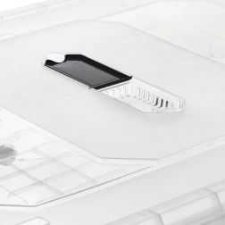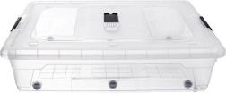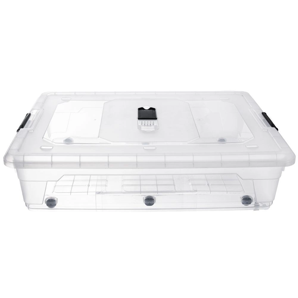 Iskoristite prostor ispod kreveta do maksimuma. Ovaj niski spremnik zapremnine 50 litara izrađen je od izdržljive i prozirne plastike, pa odmah vidite što je unutra bez otvaranja. Poklopac s robusnim bočnim kopčama čvrsto stoji na mjestu i štiti sadržaj od prašine.