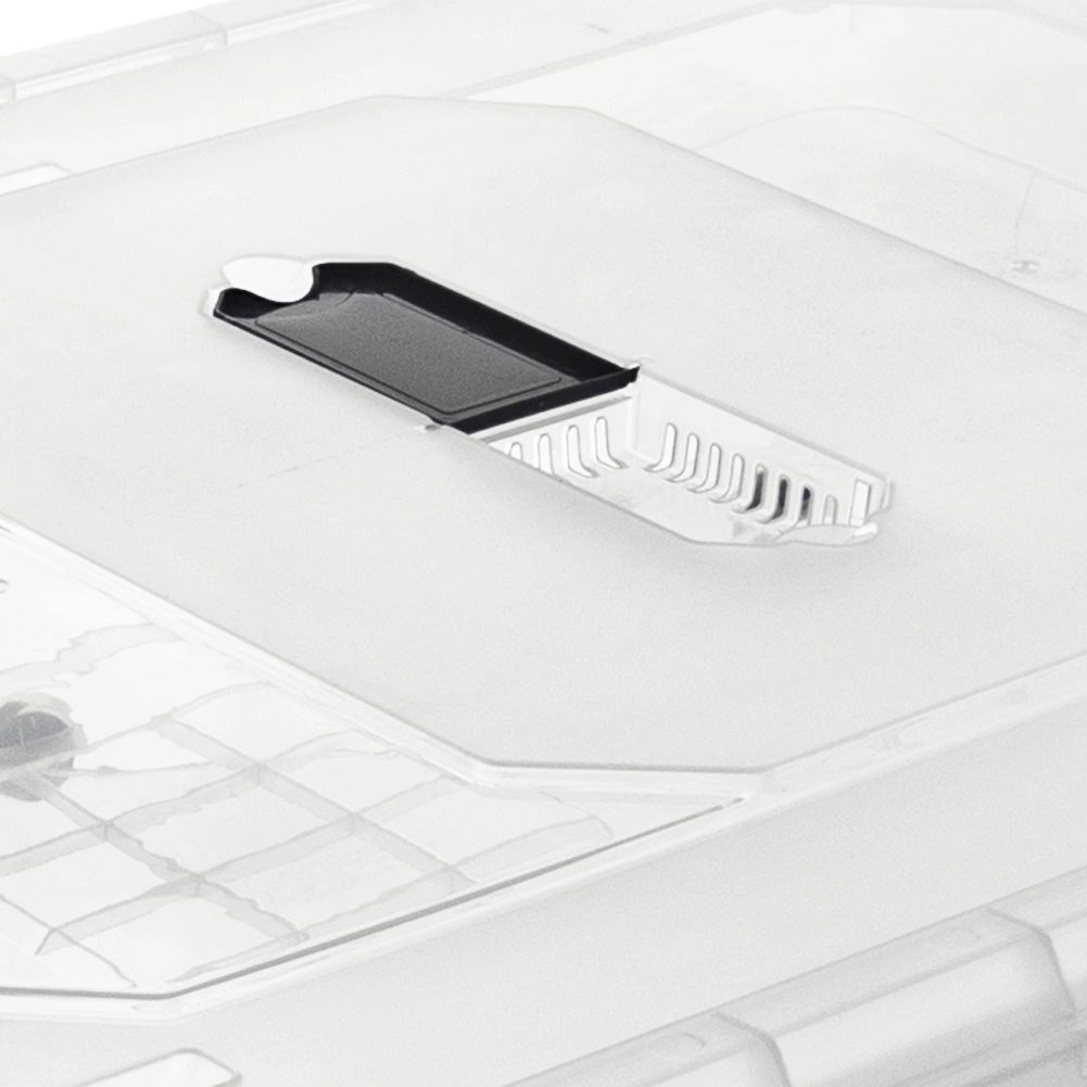 Čvrste bočne kopče i precizno nalegnuće poklopca štite od prašine. Prozirne stijenke olakšavaju brzu identifikaciju pohranjenih stvari.