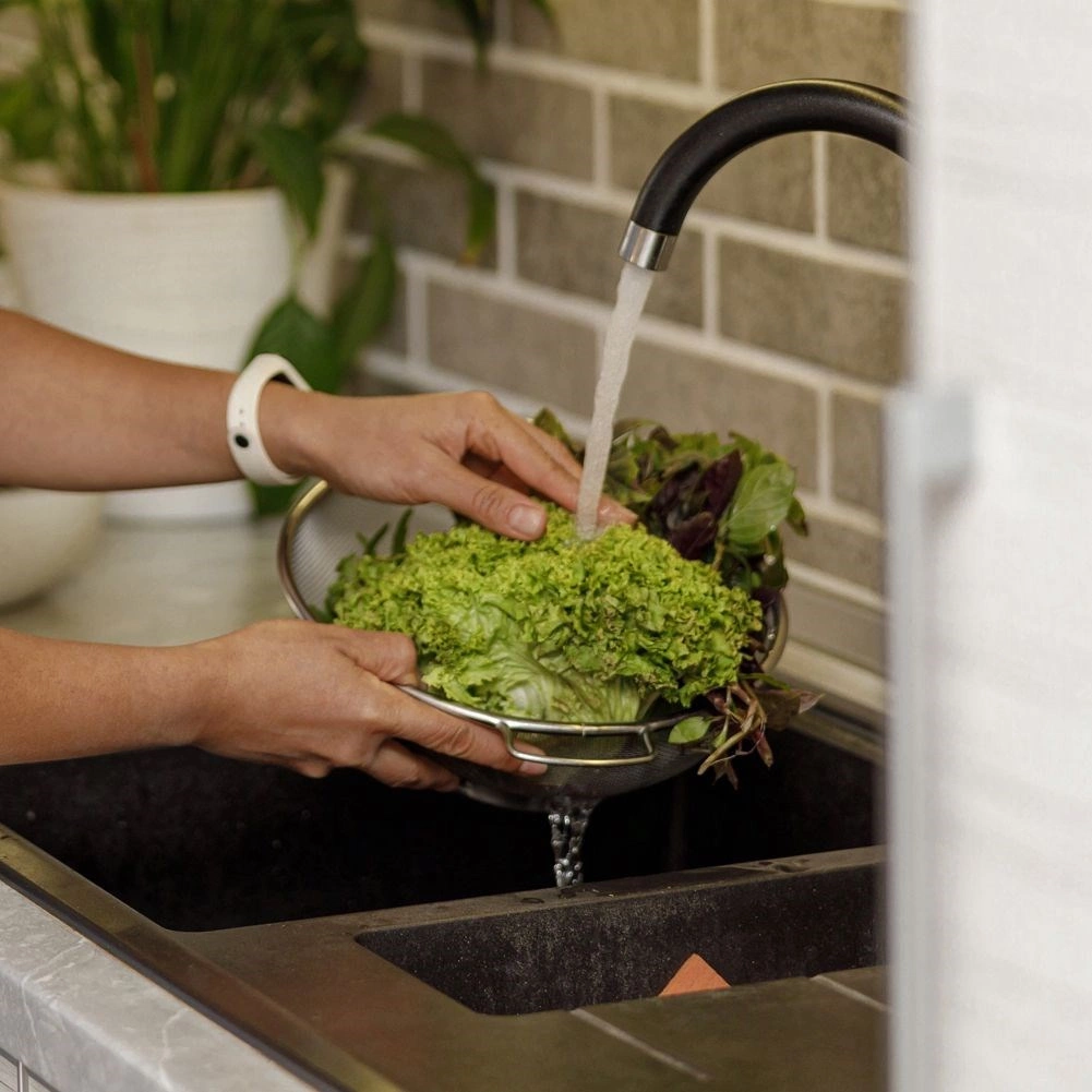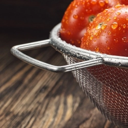 Fina mrežica od nehrđajućeg čelika pouzdano zadržava i male komadiće namirnica, a istovremeno osigurava brz otjecaj vode – idealno za rižu, tjesteninu i sitno voće.