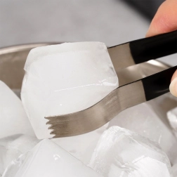 Protuklizni zupci na kliještima omogućuju siguran prijenos kockica leda bez dodira rukama.