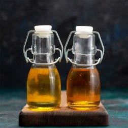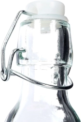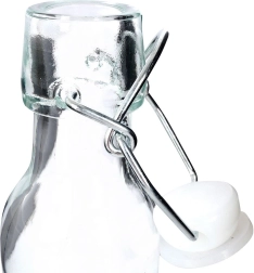 Ova kompaktna boca retro stila izrađena je od kvalitetnog prozirnog stakla i izvrsno odgovara za maslinovo ulje, aromatizirana ulja, domaće likere, vina ili voćne sirupe. Metalni klips sa silikonskom brtvom stvara hermetički zatvarač koji sprječava istjecanje te pomaže očuvati aromu i okus.