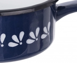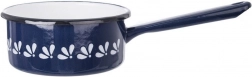 Praktičan emajlirani lončić s dugom drškom, zapremine 600 ml i promjera 12 cm, u elegantnoj tamnoplavoj boji s bijelim dekorom. Pogodan za sve vrste štednjaka, uključujući indukciju, idealan za zagrijavanje, kuhanje i pirjanje manjih porcija. Izdržljiva površina od emajliranog čelika je lako periva i zdravstveno neškodljiva.