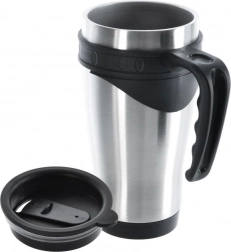 Poklopac je opremljen silikonskim brtvljenjem i zatvarajućim otvorom, što minimalizira rizik od prolijevanja. Ergonomsko uho s utorima za prste osigurava siguran hvat. Zahvaljujući univerzalnim dimenzijama stane u većinu auto držača, pa je izvrstan suputnik na putovanjima.
