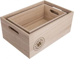 Praktična drvena kutija za pregledno odlaganje sitnica, kozmetike, namirnica ili uredskog pribora. Ima dimenzije 31 × 21 × 13 cm, čvrstu konstrukciju i bočne ručke za lako prenošenje. Odlično se uklapa u kuhinju, dnevni boravak i ured te može poslužiti i kao stilska dekoracija. Prirodno drvo, višenamjenska upotreba, bočne ručke, izdržljiva izvedba.