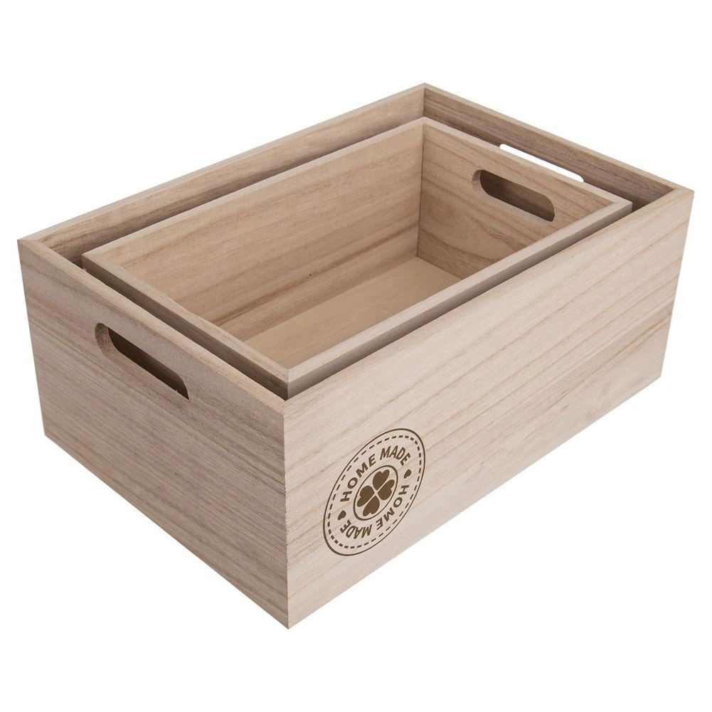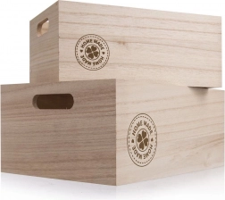 Drvena spremna kutija Home Made izrađena je od prirodnog drva i odlikuje se izdržljivošću i bezvremenskim izgledom. Zahvaljujući praktičnim dimenzijama 31 × 21 × 13 cm lako je smjestite na policu, komodu ili radni stol. Bočne ručke omogućuju udobno prenošenje i s sadržajem.