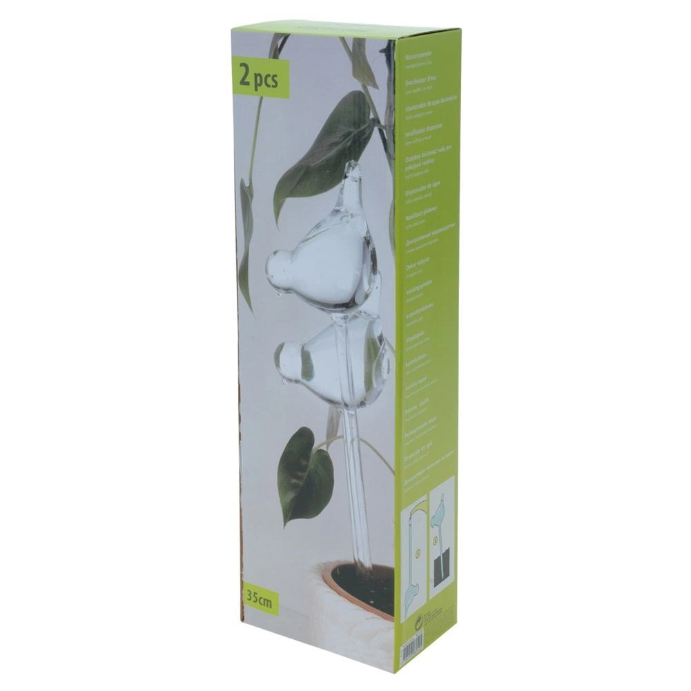 Set dviju dekorativnih zalijevajućih kugli idealan je za sve sobne i balkonske biljke. Svaka kugla prima do cca 200 ml vode i zahvaljujući postupnom otpuštanju vlage održava supstrat optimalno hidratiziranim do 2 tjedna (ovisno o vrsti biljke i uvjetima). Jednostavna upotreba – napunite vodom i umetnite u zemlju.