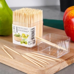 Praktični zatvorivi dozator održava čačkalice čistima i uvijek pri ruci – kod kuće, u restoranu i na catering događanjima. Dvostruko šiljati vrhovi savršeni su za korekcije, dekoracije deserata ili kao pikovi za mini burgere, masline i sireve.
