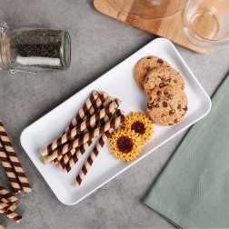 Čisto bijeli izgled s oblim kutovima istaknut će se na svakom stolu i naglasiti prezentaciju deserata, grickalica i manjih zalogaja.