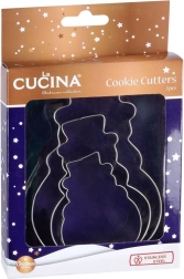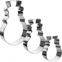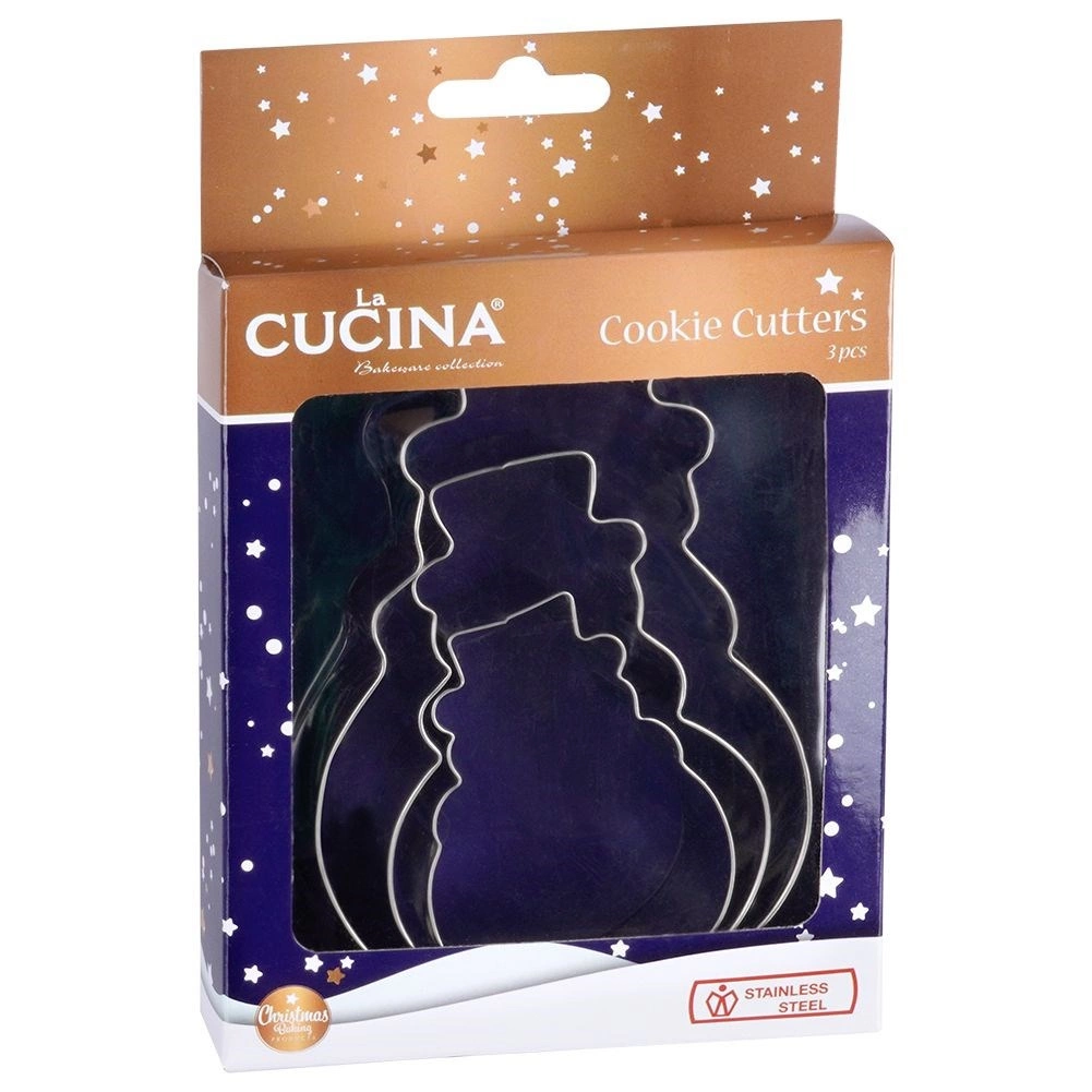 Set od tri kvalitetna rezača u obliku snjegovića razveselit će svakog ljubitelja pečenja. Rezači su izrađeni od izdržljivog nehrđajućeg čelika, zbog čega su čvrsti, higijenski i spremni za svake blagdane. Tri praktične veličine (veliki 13 × 8,5 × 2,5 cm, srednji 10 × 7 × 2,5 cm, mali 7,5 × 5 × 2,5 cm) omogućuju izradu efektnog slojevitog ukrašavanja i setova keksa.