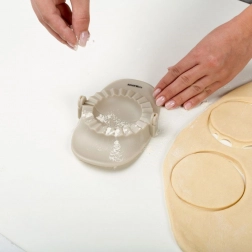 Izrađen od kvalitetne, izdržljive plastike u bež boji, prikladne za perilicu posuđa. Idealan za početnike i iskusne kuhare – savršen za piroške, paketiće, raviole ili empanade.