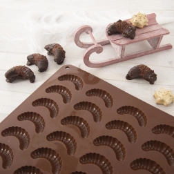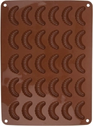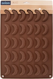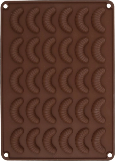 Ovaj univerzalni silikonski kalup u narančastoj boji idealan je za pečenje keksa u obliku kiflica, ali i za čokoladice i praline. Lagan je, fleksibilan, štedi prostor u kuhinji i odlično provodi toplinu za ravnomjerno pečenje. Materijal ne upija mirise ni okuse, a gotove komade lako ćete izvaditi.