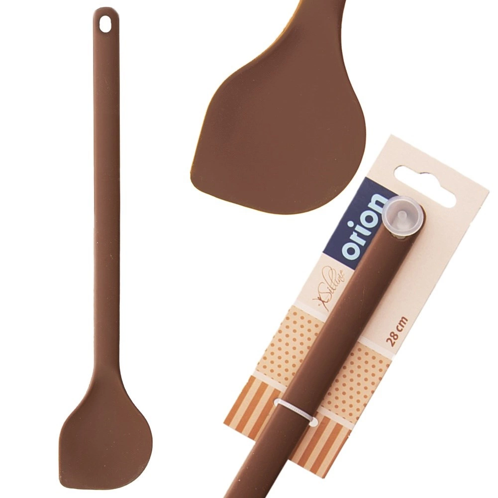Ova smeđa silikonska kuhinjska lopatica pouzdan je pomoćnik za miješanje, razmazivanje, okretanje i posluživanje. Kvalitetan silikon s unutarnjim metalnim ojačanjem osigurava idealnu kombinaciju stabilnosti i elastičnosti, pa ćete lako dosegnuti rubove zdjela i tava bez grebanja površine.