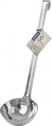Univerzalna kutlača od nehrđajućeg čelika nezamjenjiv je pomoćnik u svakoj kuhinji. Zahvaljujući zapremini 300 ml brzo i precizno možete zahvatiti juhu, umak, kompot ili gulaš. Dugačka drška osigurava sigurno i udobno držanje te olakšava posluživanje iz dubljih lonaca.