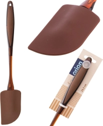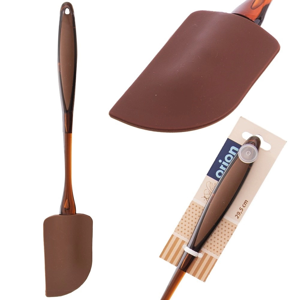 Ova univerzalna lopatica nezamjenjiv je pomoćnik pri pečenju i kuhanju. Izrađena od fleksibilnog silikona koji ne upija mirise ni tekućine, a nadopunjena ergonomskom, protukliznom drškom za udobno i sigurno držanje. U elegantnoj smeđoj boji savršeno se uklapa u tradicionalne i moderne kuhinje.