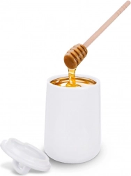 Posuda je od izdržljivog bijelog porculana, a žličica od prirodnog drva za udobno i nježno grabljenje meda.