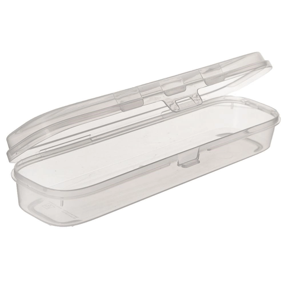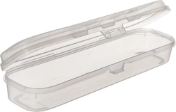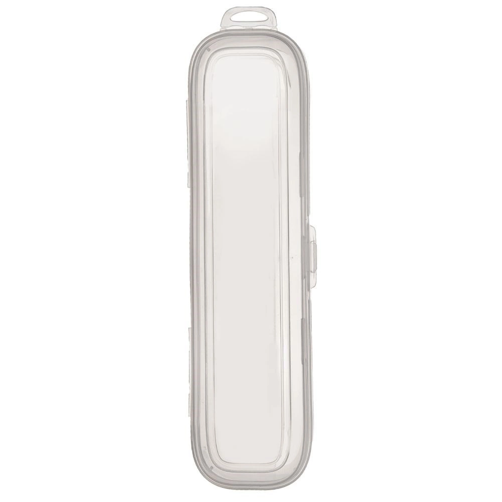 Praktična prozirna futrola za sigurno spremanje i prijenos zubnih četkica, naočala, pribora za jelo ili kozmetike. Izdržljiva plastična izvedba, pouzdan zatvarač na klik i ušica za vješanje čine je idealnim pratiteljem na putovanjima i u školi. Dimenzije 25 × 6 × 4 cm.