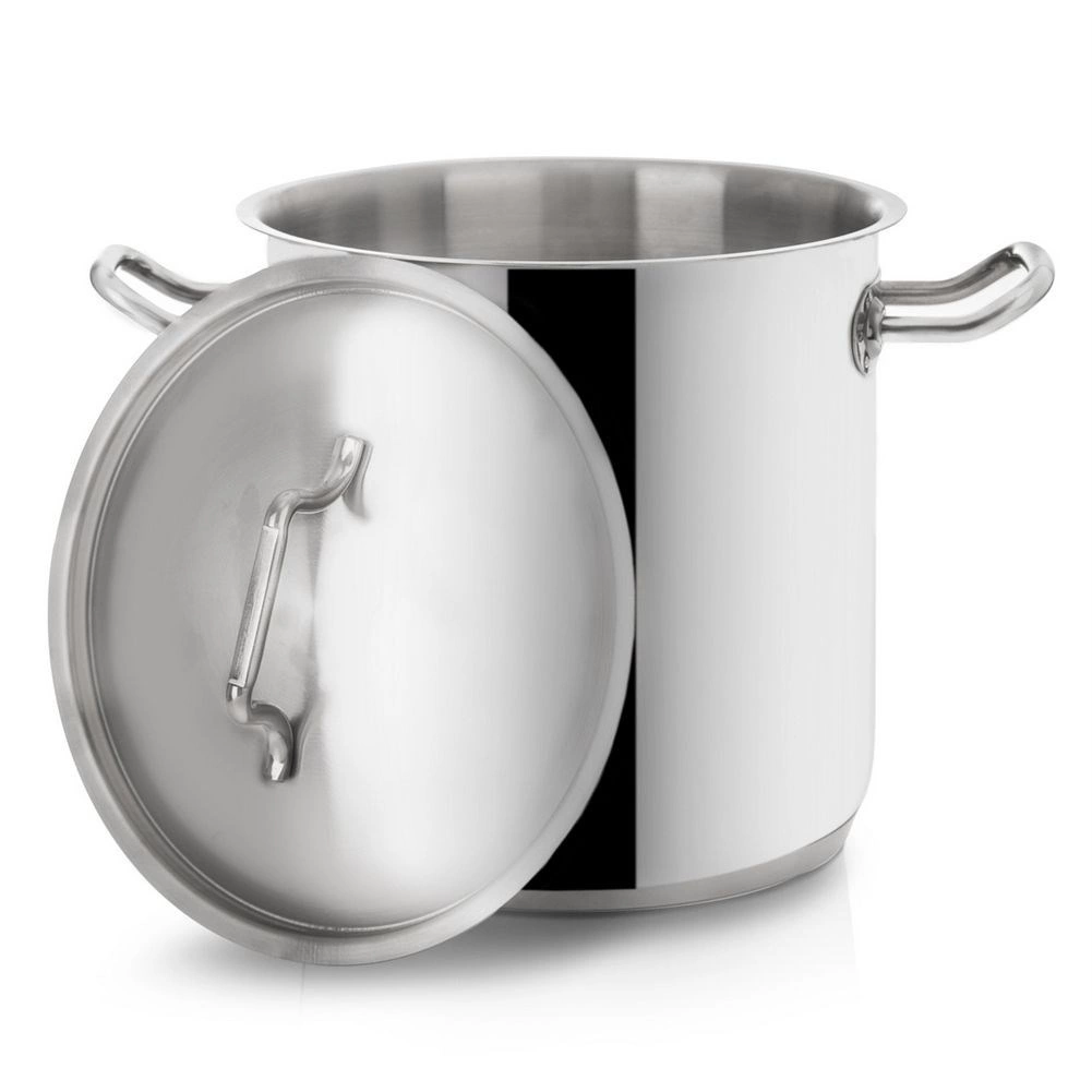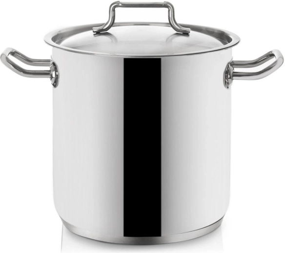Ovaj masivan nerezni lonac s poklopcem izvrsna je opcija za juhe, umake i pirjana jela. Kvalitetni čelik 304 (18/10) jamči dug vijek trajanja, otpornost na koroziju i jednostavno održavanje. Polirana vanjska i unutarnja površina daje elegantan izgled i olakšava čišćenje.