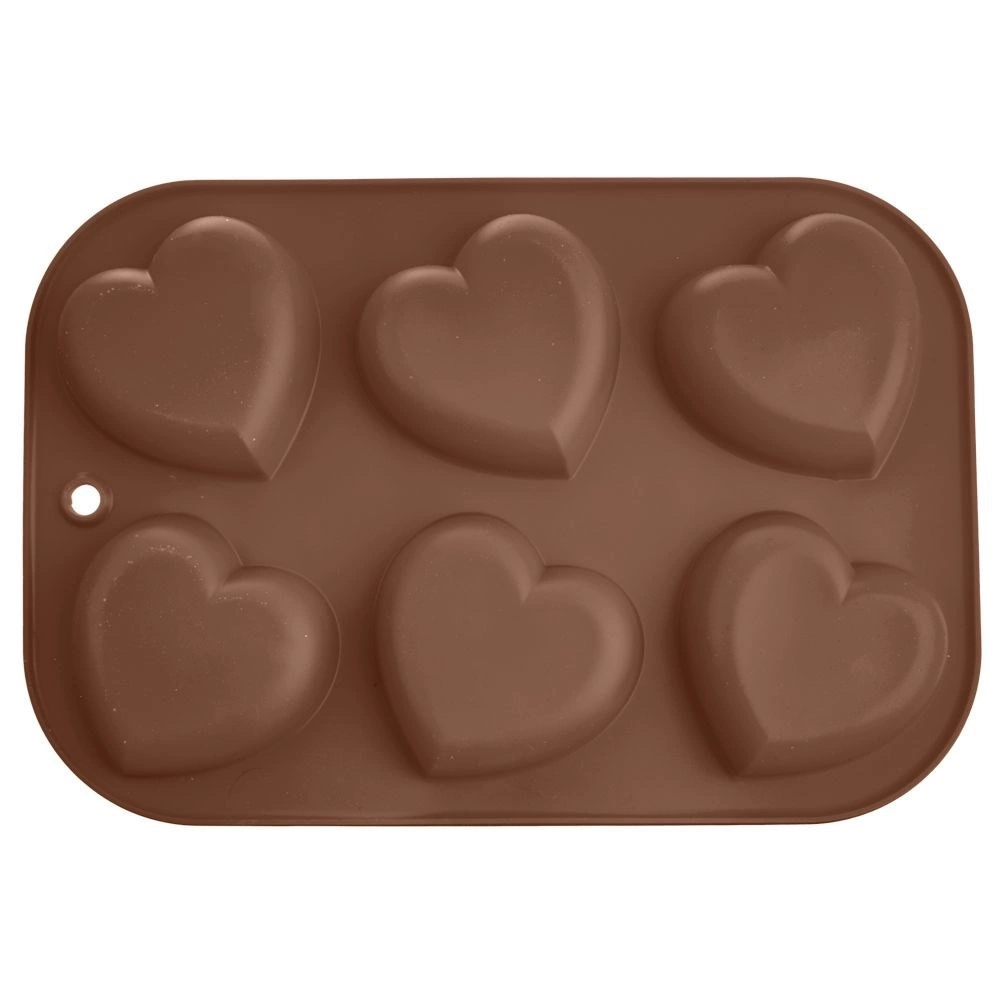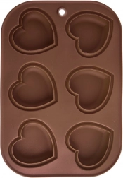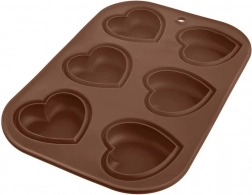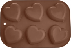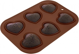 Ovaj pravokutni silikonski kalup u smeđoj boji idealan je za pripremu muffina u obliku srca, deserata i čokolada. Zahvaljujući neljepljivoj površini nije potrebno premazivanje, tijesto ne zagorijeva i gotove slastice lako se vade.