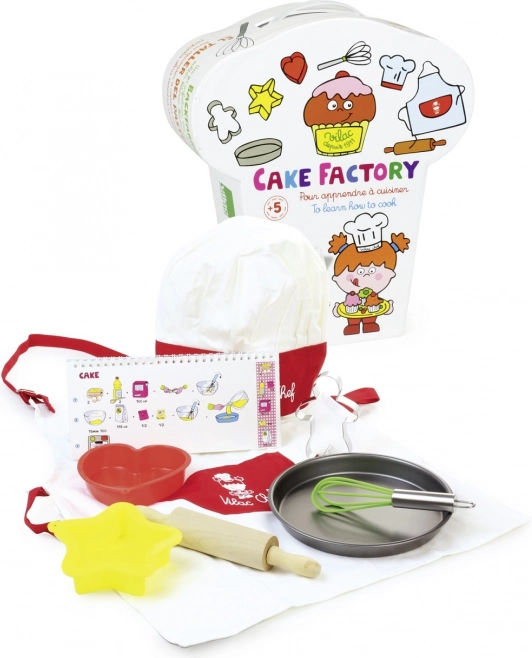 - Potpuna oprema: sadrži pregaču, kuharsku kapu, kalup za rezanje, pjenjaču, lim za pečenje, valjak i knjigu recepata.