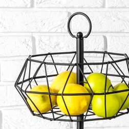 Ovaj dvoslojni žičani stalak idealan je za stilizirano izlaganje i pregledno skladištenje voća ili povrća na kuhinjskoj radnoj plohi ili blagovaonskom stolu. Otvorena konstrukcija osigurava optimalnu cirkulaciju zraka, koja pomaže da plodovi dulje ostanu svježi, a ujedno omogućuje brzi uvid u sadržaj.