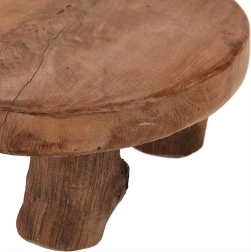Ova okrugla poslužavna daska ručno je izrađena od kvalitetne tikovine i stoji na čvrstim nogicama za maksimalnu stabilnost i atraktivnu prezentaciju. Prirodna struktura drva i rustikalna obrada daju svakom stolu autentičan šarm, bilo da poslužujete tapase, kolače, sireve ili suhomesnate proizvode.