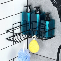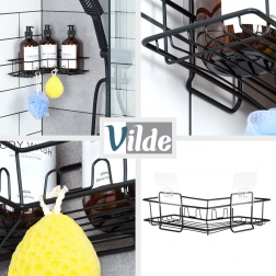 Kutna tuš-polica Vilde učinkovito koristi prostor u kutu i drži vaše šampone, sapune i spužvice uvijek pri ruci. Metalna konstrukcija s crnim komorno plastificiranim premazom je otporna na koroziju i odlično se uklapa u modernu kupaonicu. Otvoreni žičani dizajn osigurava brzo otjecanje i čisto, higijensko okruženje.