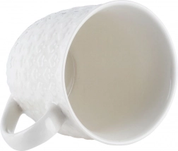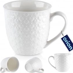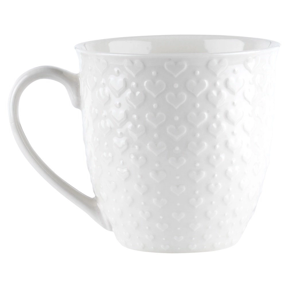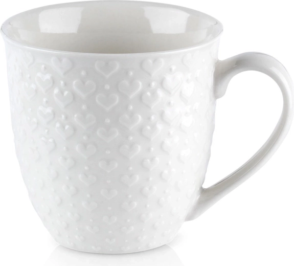 Uživajte u omiljenoj kavi ili čaju u velikoj zapremini od 580 ml. Ova bijela keramička šalica s reljefnim ukrasom srca spaja elegantan izgled i praktičnu upotrebu za svakodnevne trenutke opuštanja. Ergonomska ručka ugodno leži u ruci i osigurava siguran hvat.