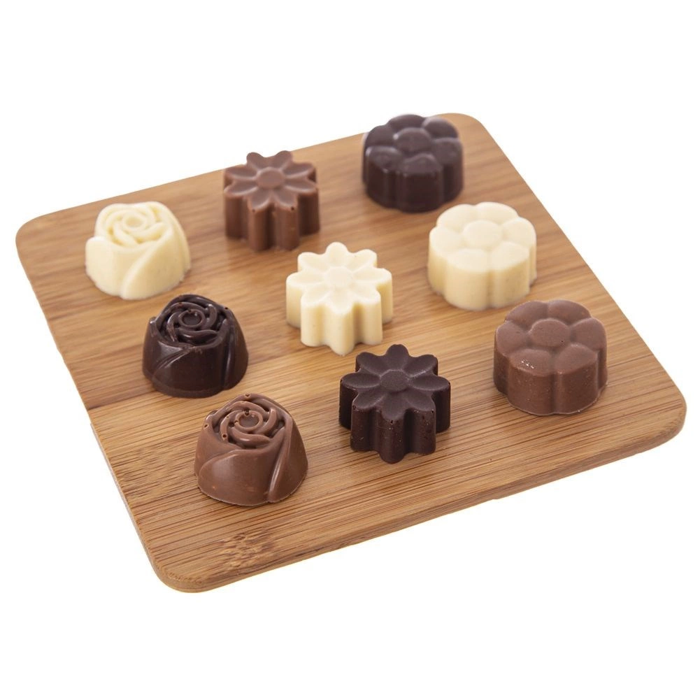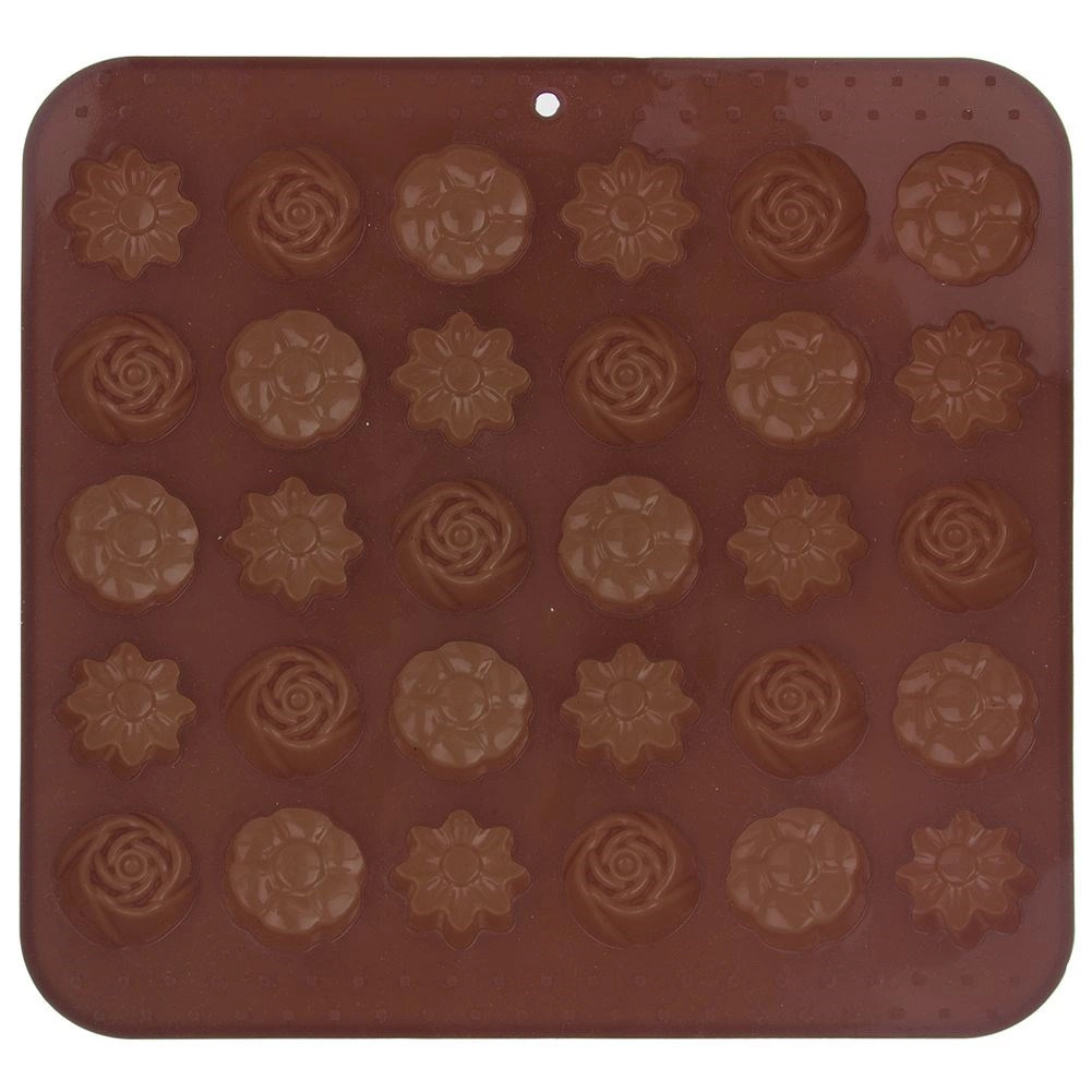 Otkrijte radost domaće izrade čokoladnih pralina i mini keksića. Silikonski kalup Sillinie dimenzija 21 × 20,5 cm nudi 30 udubina približne veličine 2,8 × 2,8 cm, u tri elegantna cvjetna motiva. Zahvaljujući kvalitetnom silikonu tijesto ne prianja, slastice se lako vade, a kalup ne upija mirise ni okuse.