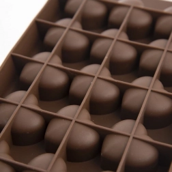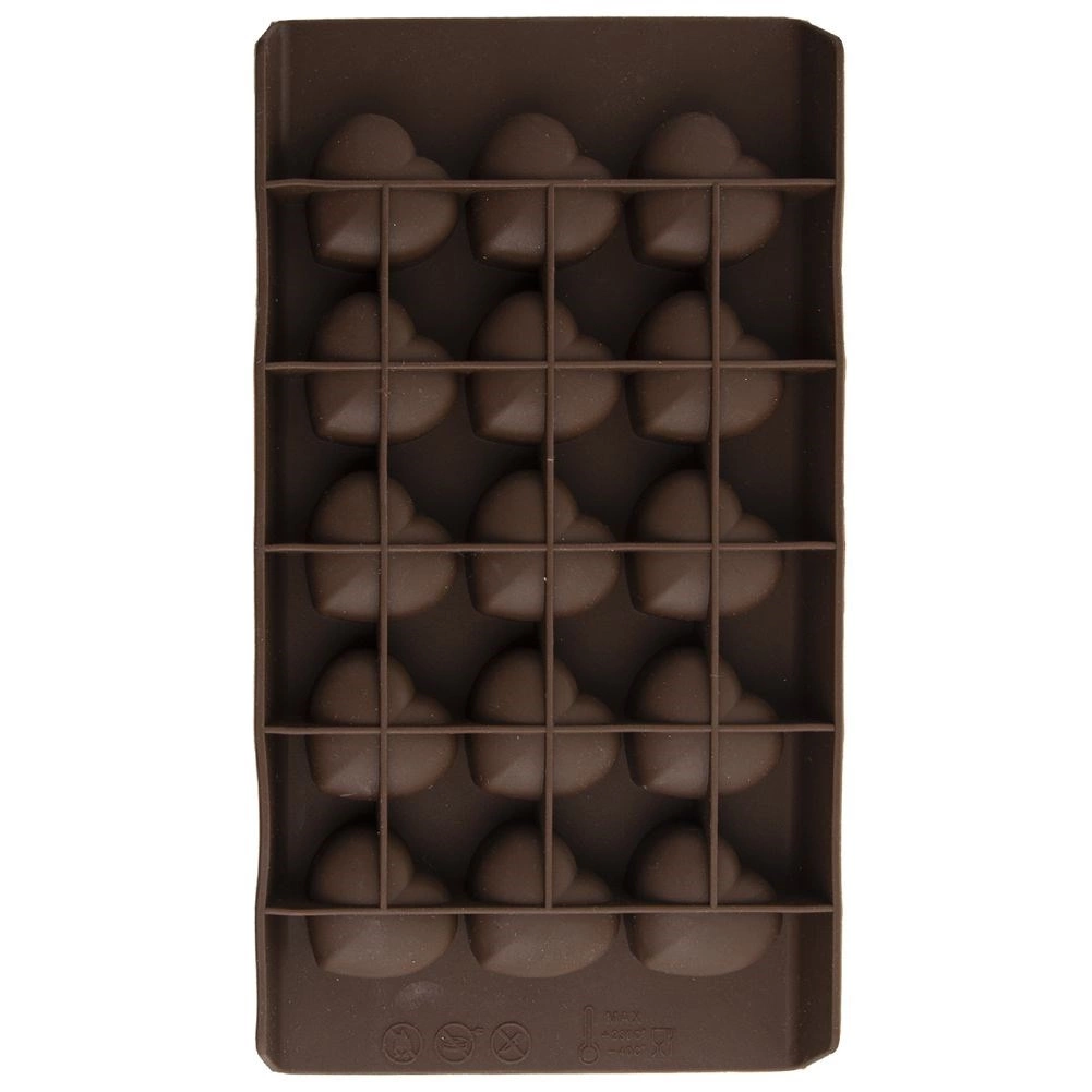 Ovaj kvalitetan silikonski kalup u smeđoj boji odličan je izbor za kućnu izradu čokoladnih pralina, sitnih keksića ili slatkiša u obliku srca. Zahvaljujući neljepljivoj površini nije potrebno premazivanje ni posipanje, a gotove komadiće lako ćete izvaditi.