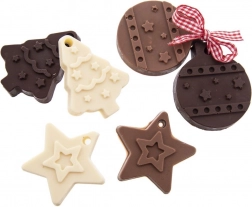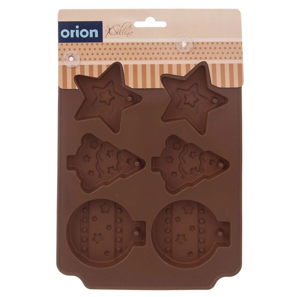 Ovaj smeđi silikonski kalup s božićnom tematikom idealan je za pečenje keksa i medenjaka ili izradu čokoladica i pralina. Šest udubljenja u tri popularna oblika – zvijezda, jelka i kuglica – stvara efektne slastice s reljefom i otvorom za vješanje na bor. Fleksibilan i neljepljiv silikon omogućuje lako vađenje bez potrebe za podmazivanjem.