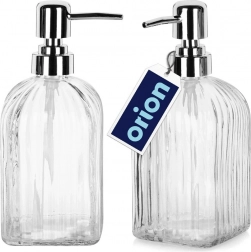 Praktičan i stilski dozator za tekući sapun ili sredstvo za pranje posuđa od kvalitetnog, dekorativno rebrastog stakla. Prozirno tijelo omogućuje trenutačnu kontrolu sadržaja, dok metalno sjajna pumpica osigurava udobno i čisto doziranje. Odlično pristaje kupaonici i kuhinji te pomaže održati red oko umivaonika ili sudopera.