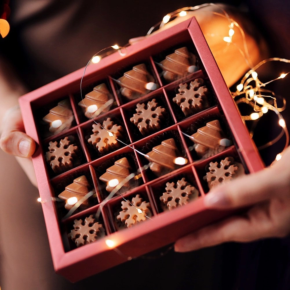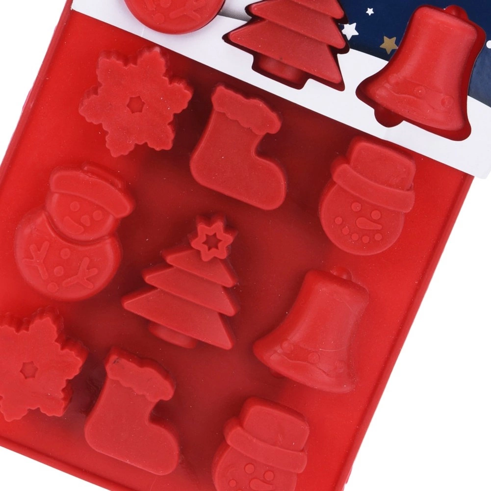 Šest omiljenih motiva (snjegović, jelka, zvončić, pahulja, čarapa) u 12 udubljenja veličine cca 3,5–4 cm za praline, čokoladice i kekse.