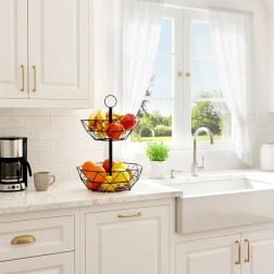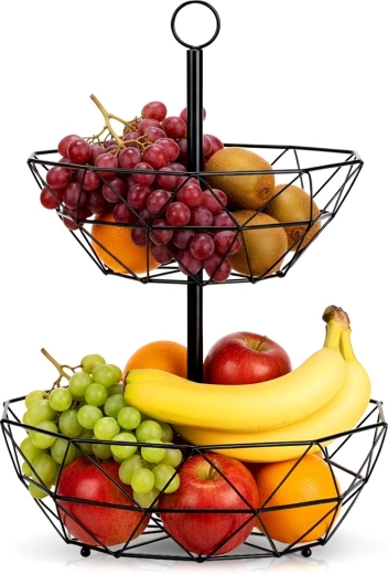 Dvourazinska žičana košara izvrsno je rješenje za pregledno i higijensko skladištenje voća, povrća i sitnica u kuhinji ili blagovaonici. Otvorena konstrukcija podupire cirkulaciju zraka, pa voće ostaje dulje svježe, a vertikalni raspored štedi dragocjeni prostor na radnoj plohi.