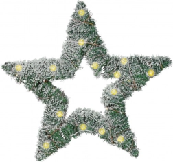 Integriranih 40 LED s toplom bijelom bojom ravnomjerno osvjetljava oblik zvijezde, dok funkcija tajmera automatski gasi svjetla nakon 6 sati i ponovno ih pali nakon 18 sati. Dekoracija je namijenjena za unutarnju uporabu i izvrsno pristaje kao božićni vijenac na vratima ili kao samostalan svjetlosni element.