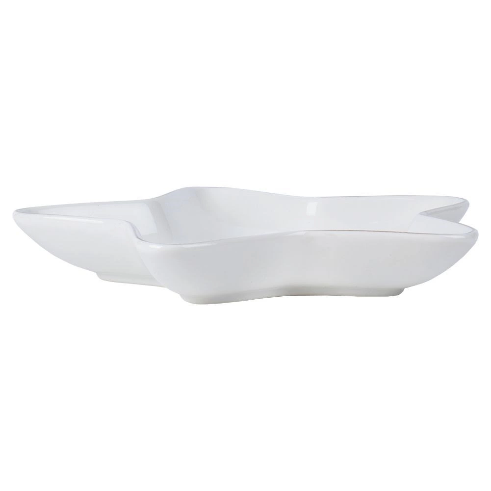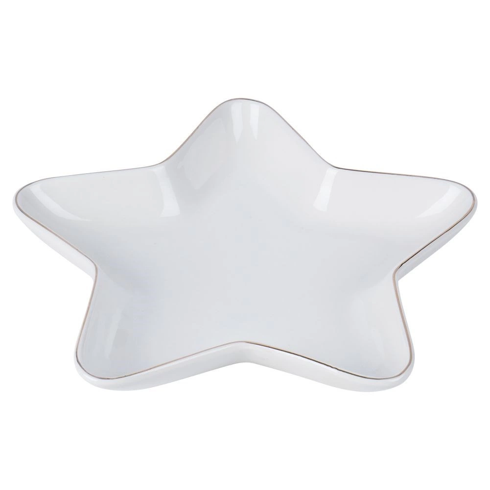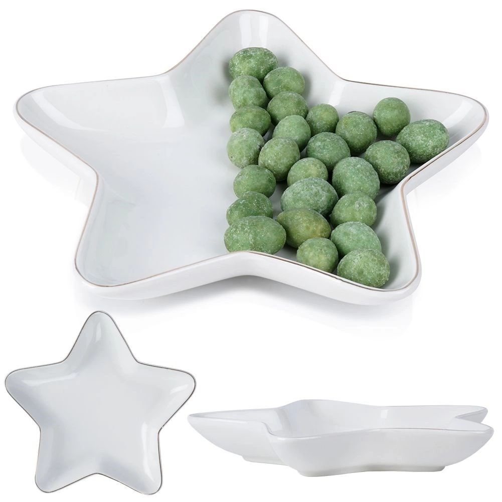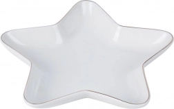 Stvorite blagdansku atmosferu na stolu s ovim dekorativnim tanjurom u obliku zvijezde. Kvalitetan porculan u bijeloj boji i decentan dizajn naglasit će posluživanje kolačića, orašastih plodova, kanapea i sitnih deserata. Tanjur je čvrst, izdržljiv i zahvaljujući praktičnim dimenzijama prikladan za svaki dom.